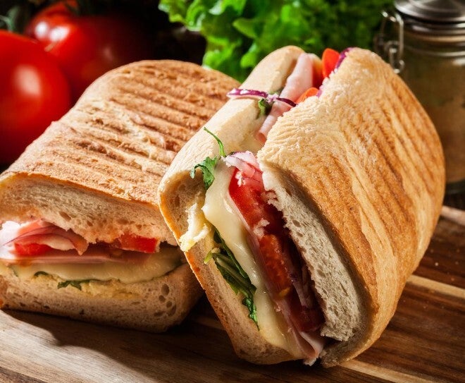 Belegte Panini mit Mozzarella mit getrockneten Tomaten